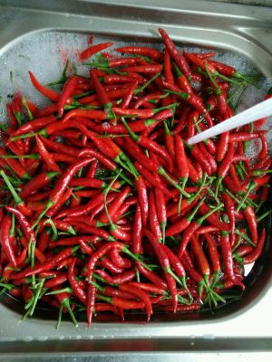 选红辣椒,朝天椒特辣两种中和了下。浸泡清洗。