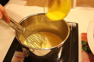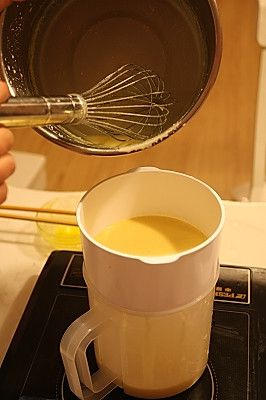 倒入冷却后的奶液中,记得要边倒边搅哦,直到完全搅拌均匀。