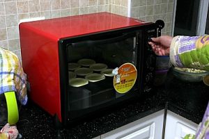 烤箱开上下火190度预热,即看到石英管很红很亮的时候就可以了。关火,将烤盘放入烤箱中下层的格子上。