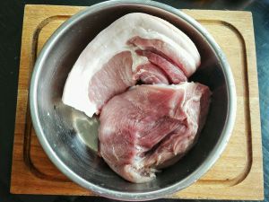 猪肉买回来清洗,放冷水浸泡半小时,捞出沥干剁细,,,