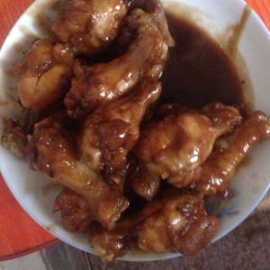 把翅根里的蒜,姜拣出来,扔掉,锅中倒入适量的油,放入翅根,翻炒两分钟,倒入百事可乐一瓶煮,煮到汤汁浓稠的时候,即可关火。