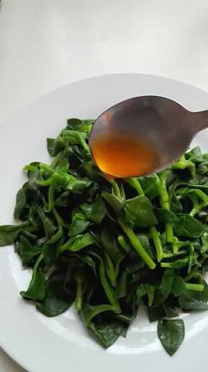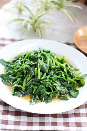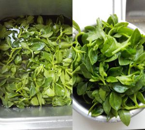 过沸水焯水,速度要很快,否则很快就变色;这是焯水后的样子