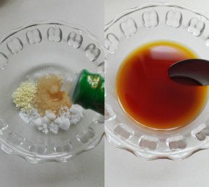 碗里放入白糖、鸡精、少许的盐,放入米醋,搅拌至糖融化;