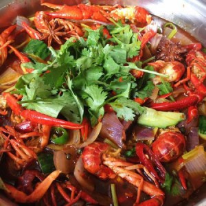 将油熟后,放入豆瓣酱,所备的料,将虾倒进去翻炒,大概10钟左右,放入小青椒提味调色,即可,如果吃的味道大的朋友可以适量加些盐。