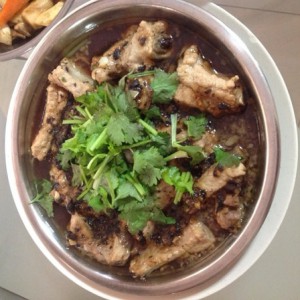 准备排骨,洗净控干水,用开水飞一下水,去去油沬子。