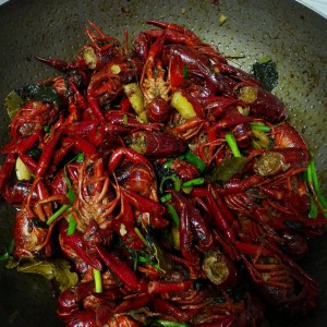 下入处理好的虾加料酒翻炒,待虾肉变白,虾变红,倒入一瓶啤酒,煮开。加蚝油,生抽,白糖,腐乳,中火烹煮。不时翻动。