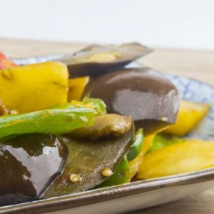 将茄子和土豆放在一起,拌入少量油,但是,要保证,每块都沾上油。