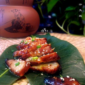 烤好的叉烧,马上刷上一层油,让她保持红亮,放凉切片就可以了