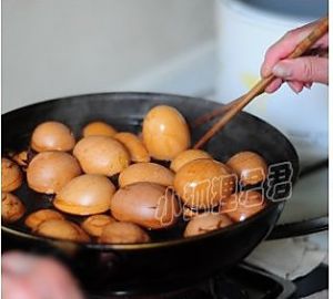 不需要关火,翻动鸡蛋,把下面的鸡蛋夹到上面,这样上下均匀更加入味,翻好以后继续小火煮15分钟。