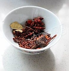 重新加水后,加入调料:八角、桂皮、花椒、香叶(如图那么多量),