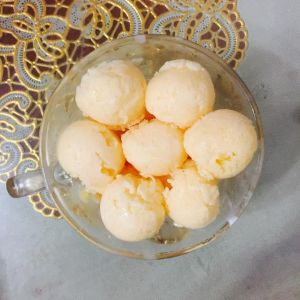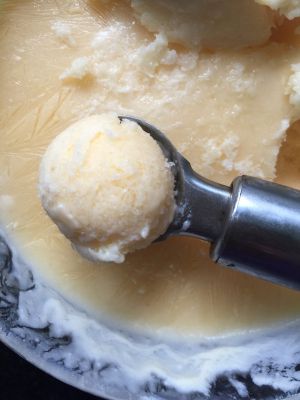 等奶锅中调好的棉花糖蛋黄牛奶冷却后加入酸奶,放入冰箱冰40分钟,拿出来用打蛋器搅拌。再放冰箱过40分钟再拿出来用打蛋器搅拌,重复多次。
