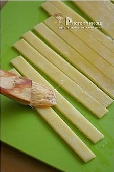 凝固后的面片切割成宽约1cm的长条状;