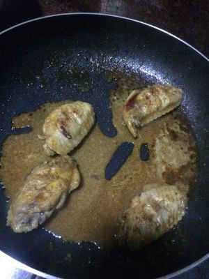 再加入适量椰浆,翻炒均匀,使鸡翅均匀裹上椰浆