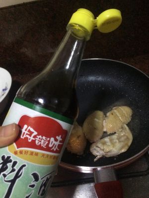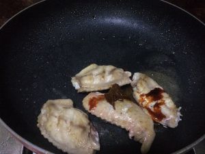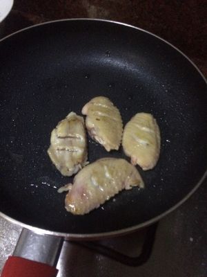 油热下姜片爆香后放入鸡翅煸至金黄色