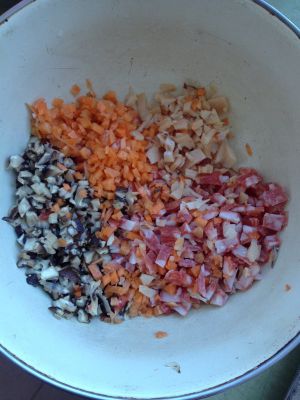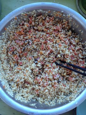 我这里混合了香菇、香肠、胡萝卜、干鱿鱼