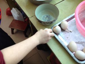 鸭蛋,根据人来定,一般一个人最多吃两个就够啦!我家有4个人,我准备了6个蛋!鸭蛋一定要清洗干净哦!