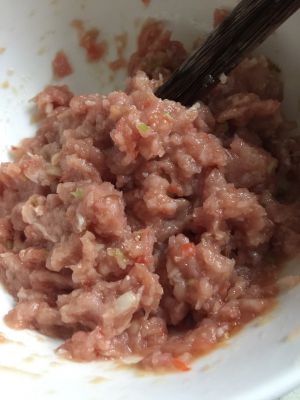 猪搜虾肉剁成末,加葱,姜,料酒,盐,生抽,麻油拌均。