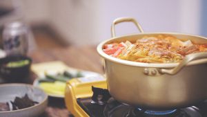 锅内倒入高汤(牛骨汤或鸡汤均可),并加入以上调制好的辣酱,搅匀。