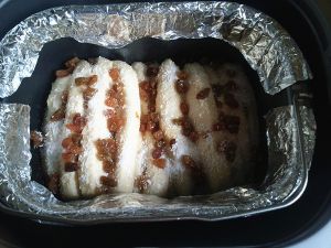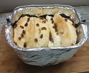 表面刷层黄油、撒上椰蓉和葡萄干粒