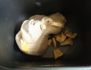 加入酵母和软化的黄油,启动和面程序:30分钟