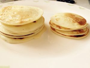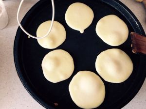 用勺子倒入电饼铛或者平底锅里,煎好一面反过来煎另一面。