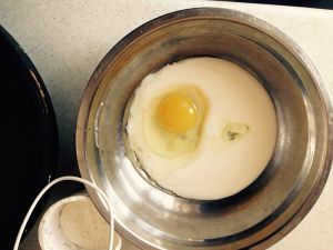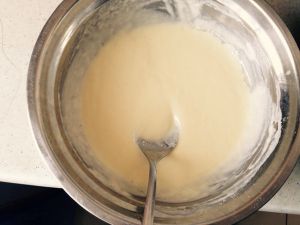 酸奶,鸡蛋,植物油倒在一起,加点白糖搅拌均匀。酸奶越浓稠越好,如果是自制酸奶,那要多放点糖。