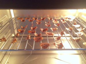 将烤盘置于烤箱中间层,上下炉温100度,40分钟。