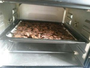 好啦,1斤牛肉也就这么一小碗。不过吃着放心啊。我喜欢吃硬一些的。有嚼劲,就多烤了一会,50分钟左右。