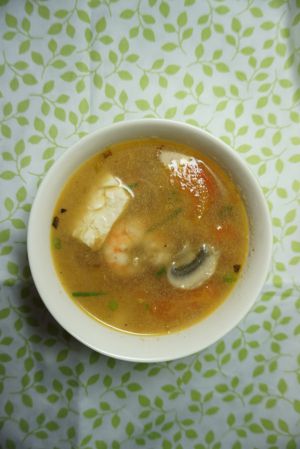 锅烧热后下入少许油,依次放入姜葱煸炒至有香味后将西红柿下锅,煸炒(个人喜欢将西红柿炒软有汁流出)然后下入口蘑煸炒3min加盐炒匀,倒入烧好的热水,盖上锅盖至水煮滚后下入虾仁,顺次将豆腐也切块入锅。