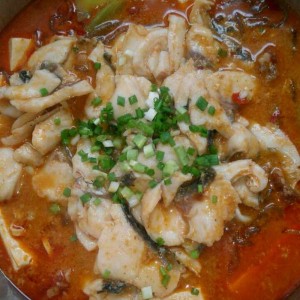 热油,放姜片,豆瓣,炒香倒入鱼汤。(自家吃把鱼头也煮进去了)想要的锅底煮好