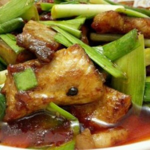 六 依次 加糖 加郫县豆瓣炒熟后 加蒜苗翻炒一分钟