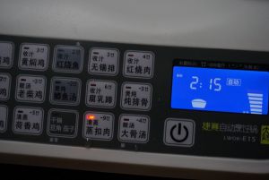 将包好的咸鸭蛋放在捷赛电自动锅中,选择清蒸荷香鸡键,图中的键是我开锅试用,后调过的