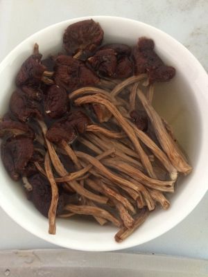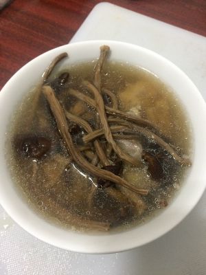 一个小时后再打开高压锅,扔进浸泡好的茶树菇,再炖一个小时就大功告成了(网上说茶树菇不易炖太久),最后再加点盐,嗯~味道不错哦^_^