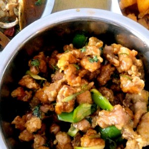 第三步:就是倒油热锅,多倒些油,毕竟是炸么…这时就把用淀粉抓好的肉下锅炸,如果做很多的话,可以分两次炸完,待炸好时,肉它会自己漂浮到油面上,喜欢酥的就需要都炸好时,在一起倒入锅中炸第二次,可以捞出控油了。