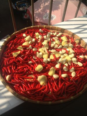 姜蒜去皮、辣椒去蒂洗净备用(去蒂的时候注意不要把辣椒弄破 去除破损的辣椒。用清水稍微冲洗就好,注意不要沾到油脂)