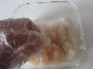 将加好调料的鱼柳用手抓匀上浆, 腌制十分钟;