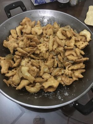 油锅煮沸后下锅炸好捞出、想吃脆一点的可以炸深色些、