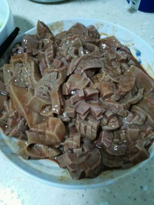 买猪腰时可以请师傅把猪腰上的薄膜和里面的筋膜先去除,那不能吃,看着也挺恶心的,我每次买时都不敢看,只是看着别地儿一个劲地叮嘱师傅切干净点。买回家时先用冷水浸泡除味,然后切成小块,再将每块腰片横竖切丁,注意不要将下面切断,这是整道菜最耗时最麻烦的部分