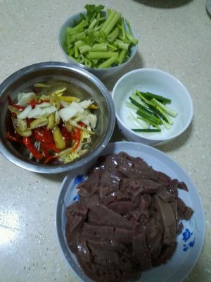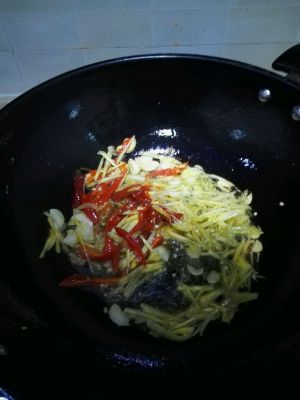 芹菜和葱切段,泡姜切丝,泡椒有点少就加了几个泡野山椒