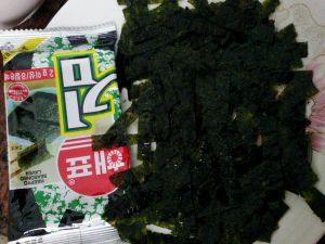 紫菜剪成宽5mm的长条就行了