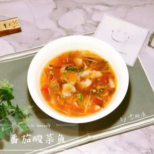 加入酸菜,煮至沸腾,然后撒葱花出锅