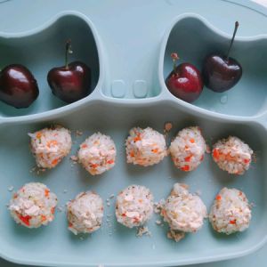 洒入适量牛肉松,好啦,香喷喷的虾仁什锦饭团就完成啦,来吃
