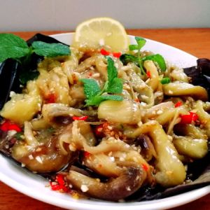 傣式凉拌茄子搞定开吃,我的菜卡路里都不高的噢。