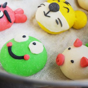 分别用不同颜色的面团,搭配制作出各种各样的卡通小动物。锅中适量水,煮沸,放上蒸笼,垫上蒸布,将做好的小馒头分别放入蒸笼中,注意要有距离,不然蒸的时候变大会沾,大火蒸15分钟即可。