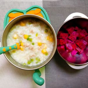 待粥煮的比较浓稠的时候加入剥皮的青豆和玉米,再熬几分钟
