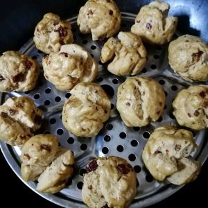 将红糖水放到温热就可以和面了以及加入红枣(大概是手触碰感到烫再降低一点温度就可以了)