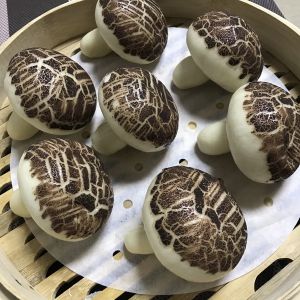用温开水化开可可粉 均匀的涂抹在馒头表面
