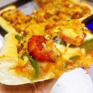 足料大披萨!最喜欢薄底厚边的披萨,披萨底烤得十分到位,和面包一样松软,,一口咬下去,丰富的口感,好有层次,尤其是那层沙沙的南瓜泥,竟然吃出了咸蛋黄的口感和味道