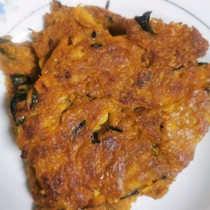 不粘锅加油,将调好的糊糊压扁放入。待一面金黄后翻面。火不要太大,不然容易焦