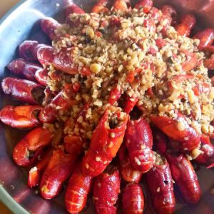 大约炖个2-30分钟后,我家不吃鸡精味精,放入一丢丢白糖,再炖个3-5分钟,香喷喷的香辣蒜蓉小龙虾就以出过了,先把一个个装盘摆造型,然后把锅里的蒜蓉酱汤汁浇在表面即可。